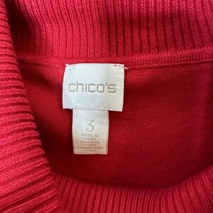 Chicos Giselle Color Block Pullover Sweater Sz 3 XL Red Black Asymmetric Hem Cowl Neck Lagenlook Long Sleeve Very good preowned condition. No known flaws. See pictures for details. Measurements: Armpit to Armpit 23 Shoulder to hem 23/27I2820