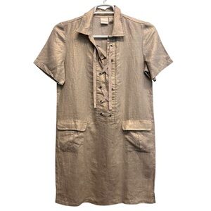 Chico’s Gold Foiled 100% Linen Lace-Up Mini Dress Women’s Size 1 = 8/Medium