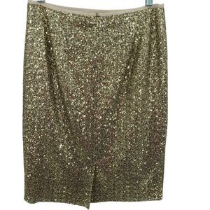 Chico's Gold Sequin Pencil Skirt S Back Zip Polyester