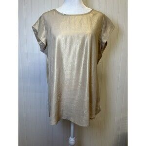 Chicos Gold Shimmer Drita Sand Keyhole Button Back Womens Top SZ 1. Holiday Top