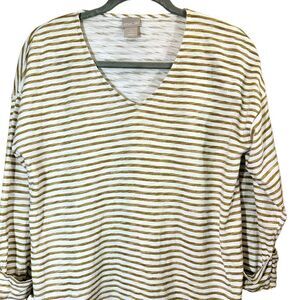 Chico’s Gold Sparkle Striped V-Neck Top Size XS