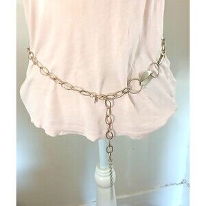 Chicos Gold Tone Chain Belt 38 Adjustable Lobster Clasp Modern Link Style