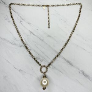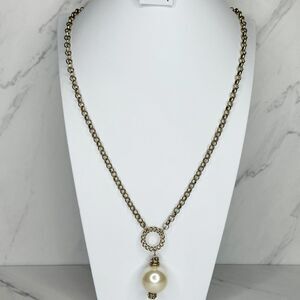 Chicos Gold Tone Chain Link Chunky Faux Pearl Rhinestone Pendant Necklace ✨