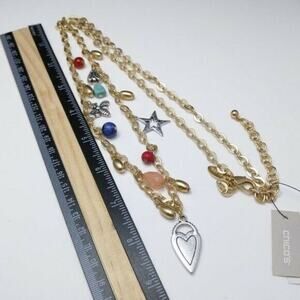 Chico's Gold Tone Charm Necklace, Bee Heart Star Beads, 39 Inches, New With Tags