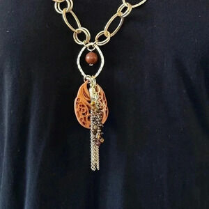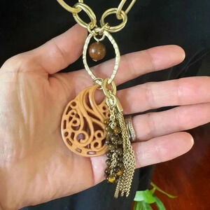 Chico's Gold Tone Long Circle Oval Chain Link Statement Necklace Y Chain