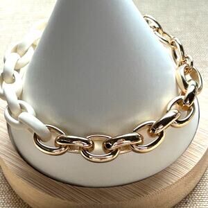 This is a beautiful Chico's gold tone and white chunky link bracelet.