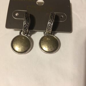 The Chico's Gold and Silver Statement Earrings are eye-catching accessories that make a bold fashion statement. These earrings feature a beautiful combination of gold and silver, with a gold main stone color that adds a touch of luxury to any outfit. The statement style of these earrings is sure to make them a standout piece in any jewelry collection, perfect for adding a touch of glamour to any look.