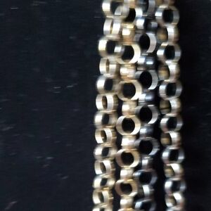 This striking necklace from Chico's combines gold and silver tones in a layered design, featuring a mix of thick curb-style chains, delicate links, and woven patterns. The bold, chunky style creates a dramatic effect, perfect for adding a touch of elegance to any outfit. Its polished finish ensures it catches the light beautifully, making it a standout piece.