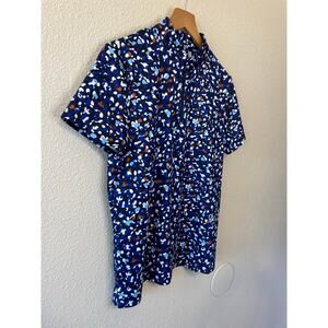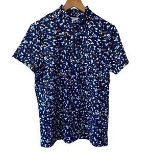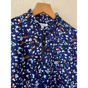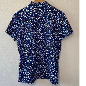 Chico’s Golf Style Blue Floral Cap Sleeve Half Zip Ruffle Top Size 0 (Small)