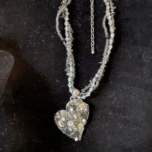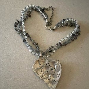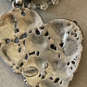 Chicos Gorgeous Amethyst Chip Necklace base metal with Glass Beads Pearls and a Gorgeous Giant Heart