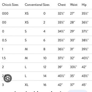 Chico’s Size 00 Converts to a Size 2 X-Small