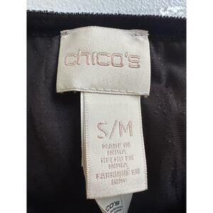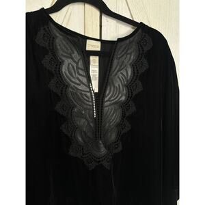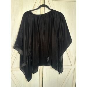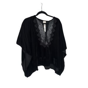 Chico’s Goth Witchy Black Velvet Poncho Top Faux Leather Embroidered Neck S/M