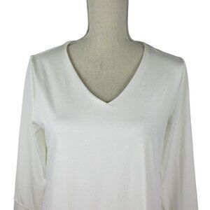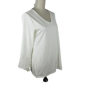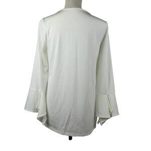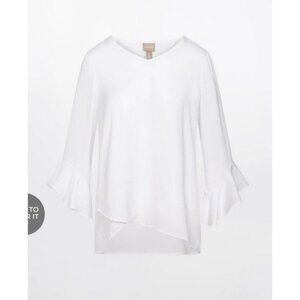 Chico's Ruffle Sleeve Lavar Tunic, wear many ways. Soft, flowing silhouette can go from dressy, or laid back and casual with jeans, skirts or shorts. New without tags, size Small 4/6