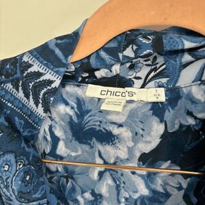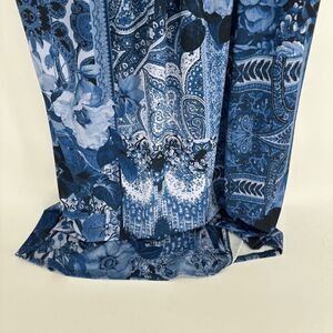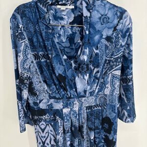 Chicos Graphic Floral Womens Blue Black White Preowned Long sleeve Pleat Maxi Dress Small