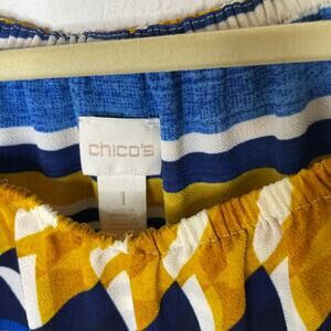 Chico’s Graphic Off-The-Shoulder Top Boho Triable Shirt STYLE: 570194876 medium