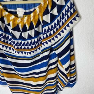 Chico’s Graphic Off-The-Shoulder Top Boho Triable Shirt