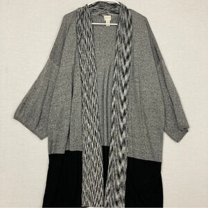 Chico’s Gray Black Open Front Long Soft Stretch Knit Cardigan XL