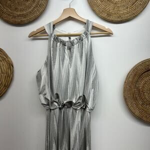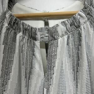 Elevate your wardrobe with this stylish Chico's maxi dress. Featuring a chic cut-out detail on chest and a flattering sleeveless cut, this dress is perfect for a variety of occasions. The long length and flowy silhouette create an elegant look, while the gray, black, and white color palette offers versatility. Pair with sandals for a casual daytime look, or dress it up with heels for a night out.