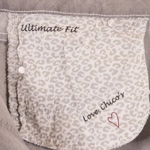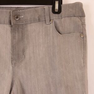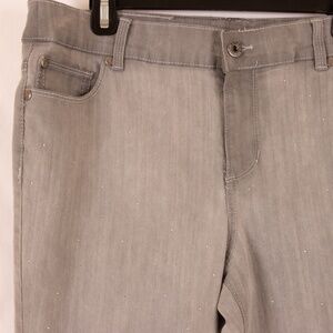 Stylish boot cut jeans by Chico's. Elegant gray color. Perfect for casual wear.