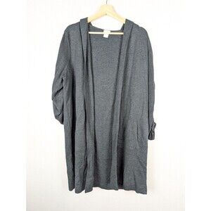 Chico's Gray Cotton Cashmere Blend Open Cardigan Hoodie Large