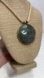Chico’s Gray Green Faux Agate Jade in Gold Frame Circle Pendant on Cord Necklace