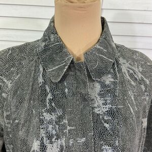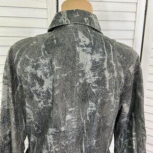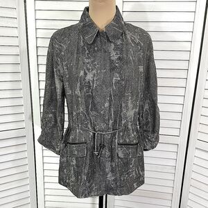Discover the perfect blend of style and functionality with this gray utility jacket from Chico's. Featuring a collared neckline and a cinched waist, this hip-length jacket offers a semi-fitted silhouette ideal for casual outings or light outdoor activities.