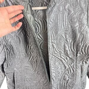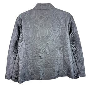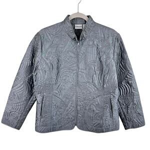 Chico's Gray Metallic Quilted Full Zip Mock Neck Lightweight Jacket Size L