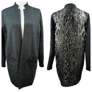Chico's Gray Open Cardigan Animal Print Colorblock Back Size 0 XS 4