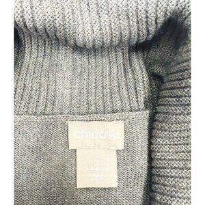 Chicos Gray Open Front Cardigan Sweater Sz 2 (Large) Rayon Nylon Blend with Belt
