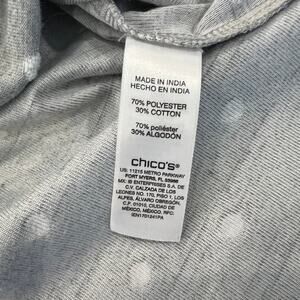 SIZE 1 (S) - This Chico's Gray & White Polka Dot Shirt is precious! gray and white polka dot design. 70% polyester 30% cotton blend, • Features a classic polka dot pattern