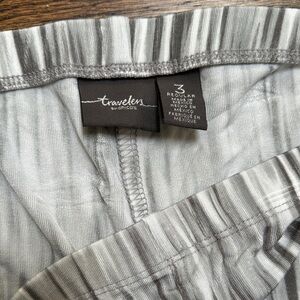 Discover the elegance of Chico'sTravelers gray wide leg pants, designed with a comfortable elastic waistband for a relaxed fit. These pants are crafted from a lightweight fabric, perfect for both casual outings and sophisticated gatherings. The versatile gray hue ensures a seamless match with any top in your wardrobe. All measurements are approximate in seam is 27 inches. 95% acetate 5% spandex. Feels like polyester. Very comfortable and flattering