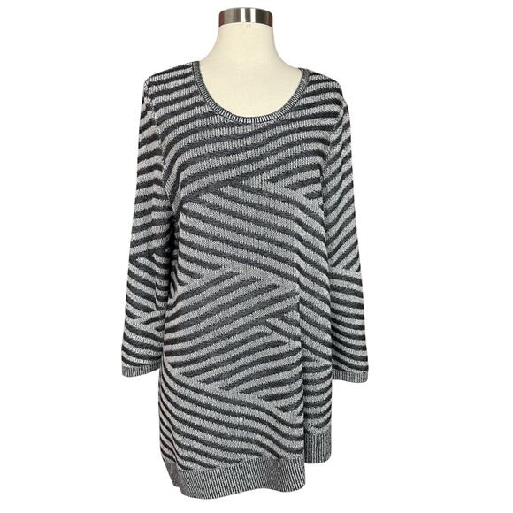 Chico's Gray Zigzag Sweater Asymmetrical Hem Women's Size 2 US Large L