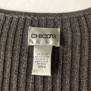 Chico’s Gray and Silver Metallic Sleeveless Tank. Chico’s Size 3. Measures chest 35”, length 25 1/2”. EUC.