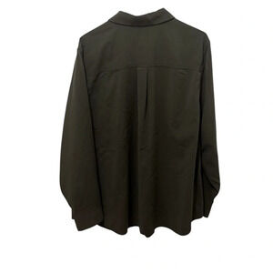 Classic olive green button front blouse . Features dual chest pockets. Soft and flowy fabric. Wear it casually or dress it up. Size 3 or 16/18.