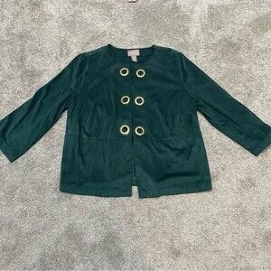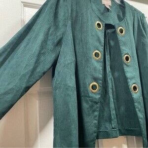 Chico’s Green Faux Suede Grommet Open Front Blazer Jacket