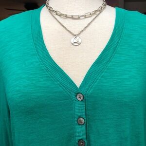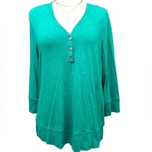 NEW with Tags Henley Side Slit Tunic with 3/4 Sleeve Casual Tee features a longer length with side slits for ease wear, plus a flattering Henley neckline. Made with lightweight cotton slub fabric, this top is a simple answer to your everyday styling dilemma.