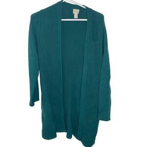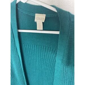 Chico's Green Long Duster Open Cardigan Womens size 0/small has pockets!