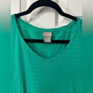 Chico’s Green Short Sleeve Top Size 1 (Medium) Lightweight Layered At Bottom Hem