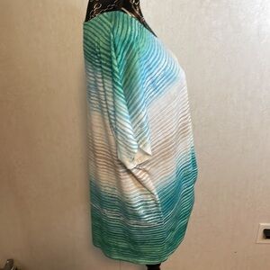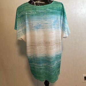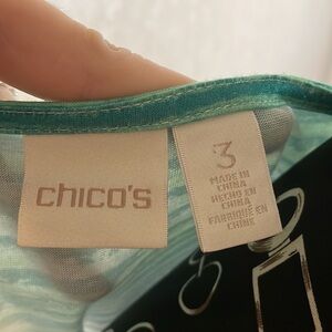 Chico’s Green Tan V Neck Cap Sleeves Size 3‎ Blouse EUC