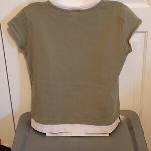 Chico's Green and White Short Sleeve Layered Look Tee Size 2 (US Large)