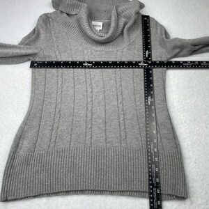 Chico’s Grey Cable Knit Cowl Neck Sweater Wool Cashmere Blend Size 0 Womens Size Small 4. See size chart in photos. Very Good Pre-owned condition. No found flaws or stains. See photos for measurements. Ships quickly from smoke-free home.