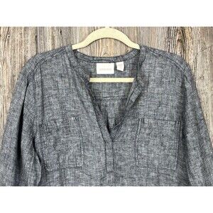 Chico's Grey Linen Popover High Low Blouse 3/4 Sleeve 2/Large Coastal Resort.