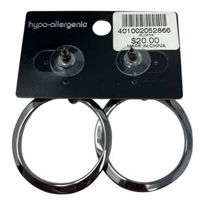 Lightweight and hypoallergenic for comfortable wear. Approximately 1.5 inches long. New with tags (NWT) and includes a gray velour pouch (not branded).