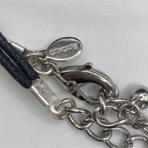 Multi Strand Black Leather with gold and silver square pendants.  Adjustable length (Approx 12”).  Very good Pre-owned condition.