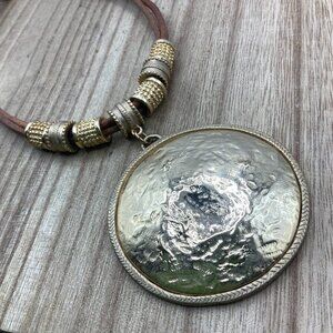 Chico's Hammered Pendant Sliding Charms Gold Tone Suede Cord Necklace