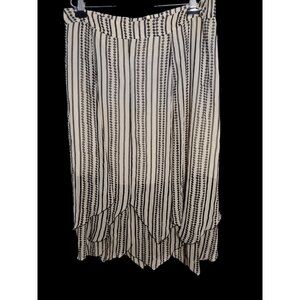 This is a nice retro skirt that is layered with 2 lengths of a Chiffon handkerchief hem that makes it a midi - maxi length. Waist has a zip closure & measures 40" x waist to hem measures 42".