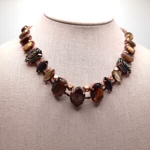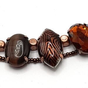 *Description: Beautiful Chico's new bead necklace in bronze colors named Helena, new with tags, The beads strung on two strands at art beads in a variety of designs. New with the original tags and in un-used condition. This would be a great addition to your jewelry collection or make a great gift!