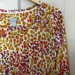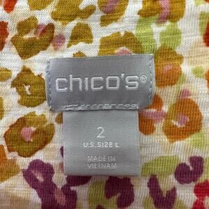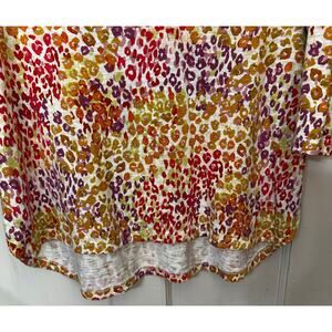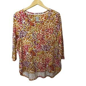 Chico’s Hi Lo Pullover Top Womens Large Colorful Leopard Print 3/4 Sleeve Modal