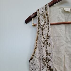 Features: beaded, embroidered, sleeveless, cream, brass hardware, lace, knit, rachero