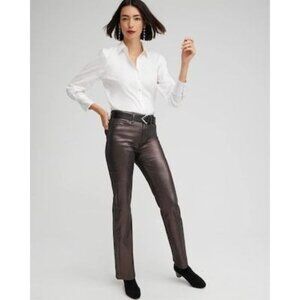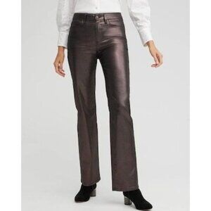 Chico's High Rise Coated Straight Jeans Bronze coated 1 size 8 Medium NWT